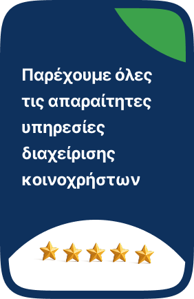 Διαχείριση κοινοχρήστων με εξαιρετική αξιολόγηση!Οι πελάτες μας εκφράζουν την ικανοποίησή τους με 4.9 ⭐ και μας προτείνουν ανεπιφύλακτα.